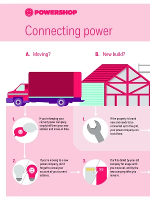 Moving house with Powershop is a breeze, whether you're a new customer or already have a house signed up with us. Just tell us where you're moving to, and we’ll take care of the rest. Find out more.
